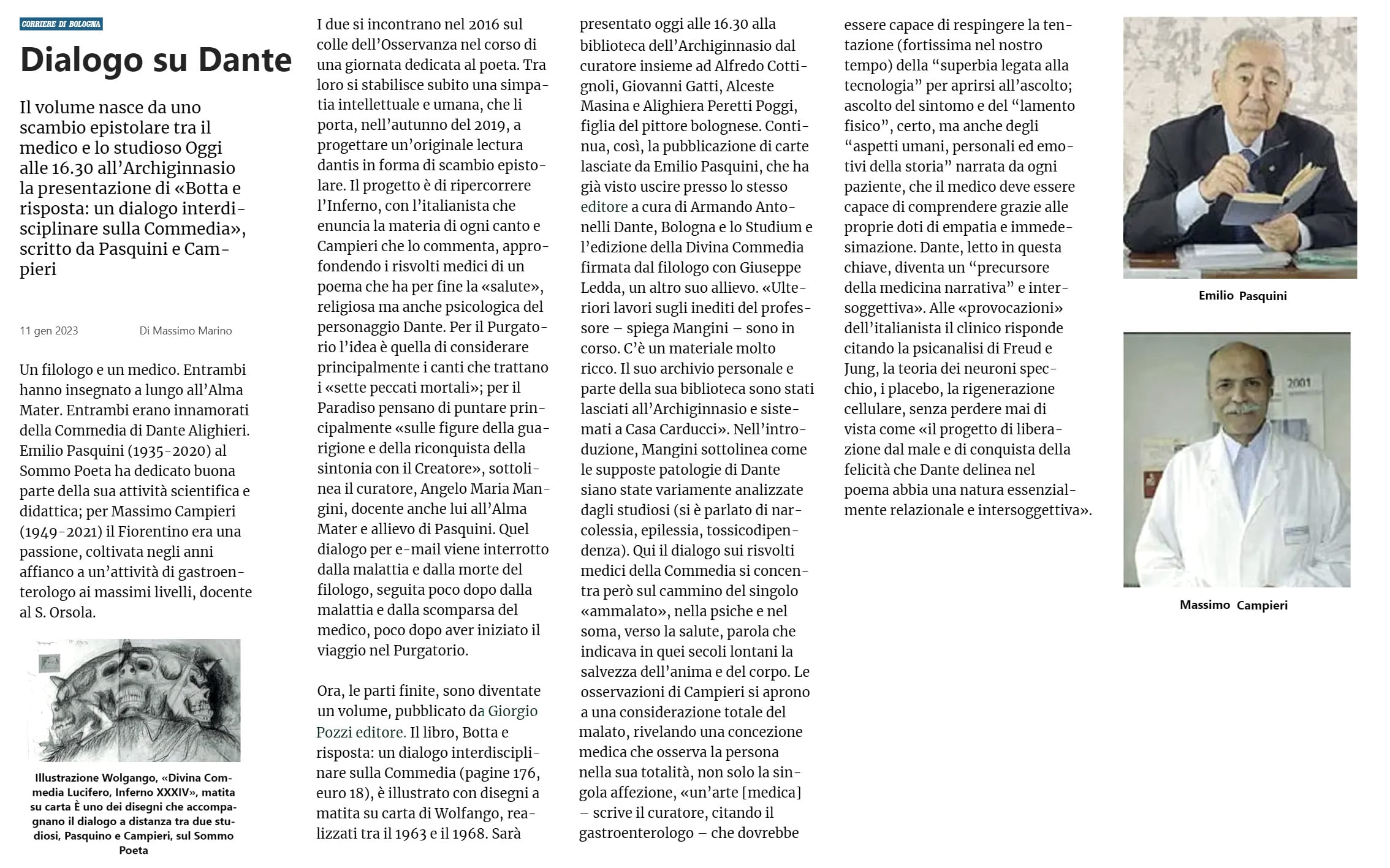 «Uno scambio epistolare fra il medico e lo studioso» (Massimo Marino, «Corriere di Bologna», 11 gennaio 2023)