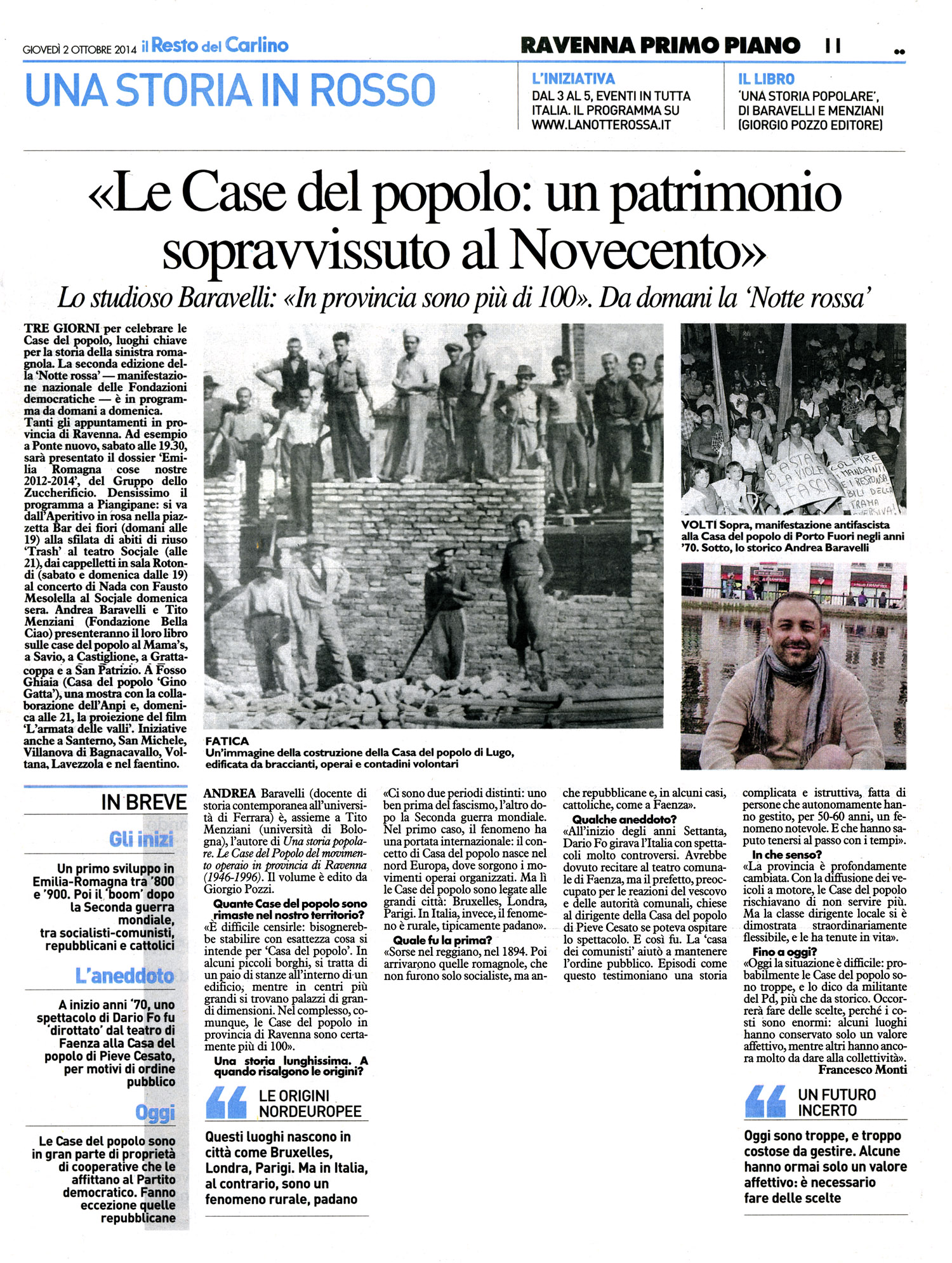«Le Case del Popolo: un patrimonio sopravvissuto al Novecento» («Il Resto del Carlino», 2 ottobre 2014)